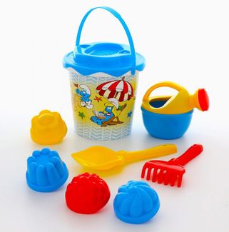 - Смурфики-1 набор №3: ведро с наклейкой, ситечко Солнышко, лопатка №5, грабельки №5, лейка малая №4, формочки 4 шт. в каталоге Пляжный отдых в России;