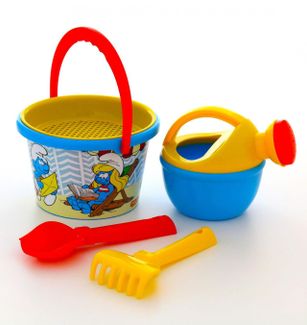 - Смурфики-5 набор №2: ведро среднее с наклейкой, ситечко, совок №2, грабельки №2, лейка малая №4 в каталоге Пляжный отдых в России;