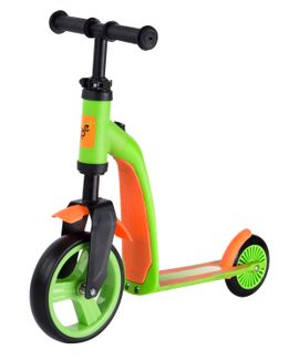 Модель трансформер бренда Ridex - это беговел-самокат. Особенность данной модели заключается в возможности трансформации беговела в самокат простейшим нажатием на кнопку. В движение ребенок приводит его собственными ногами, отталкиваясь от земли. Несомненная польза этой модели в том, что она создает определенный уровень нагрузки на все мышцы, формируя первые навыки балансирования. Катание на беговеле-самокате развивает мышцы ребенка, учит его контролировать равновесие, укрепляет общий тонус организма. Яркий дизайн непременно понравится каждому малышу!Характеристики:Состав конструкции: 80% нейлон + 10% сталь + 10% алюминийРуль, высота (см): 57 - 68Грипса, длина (см): 12Грипса, диаметр (см): 4Грипсы, материал: резинаДека, длина (см): 33Дека, ширина (см): 9,2Колеса, диаметр (мм): переднее - 200; заднее - 120Переднее колесо, внутренняя часть: полипропиленПереднее колесо, внешняя часть: этиленвинилацетатЗаднее колесо, внутренняя часть: полипропиленЗаднее колесо, внешняя часть: полиуретанПодшипники: ABEC - 7Система складывания: трансформерАмортизатор: отсутствуетМаксимальный вес пользователя, кг: 25Вес без коробки, кг: 2,3Размер коробки, см (ДхШхВ): 47.2x13.6x25.6 None