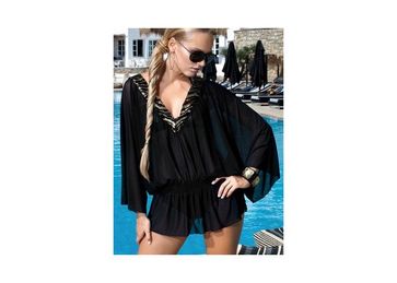 New style! Эффектная короткая туника с прямым силуэтом под низкий набедренный пояс, с прямыми длинными рукавами, расшитая по линии декольте 3 видами паеток в виде рисунка "тигр". Модель выполнена из легкой полупрозрачной микросетки, которая приятно холодит кожу под жарким солнцем. Прекрасно дополняет все купальники из линии Domenancy. None Страна производства: Италия Есть доставка.