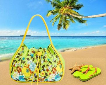 Пляжная сумка-торба Sun&Sand 10611 зеленая с цветочным узором. Внутри: отделение для телефона, отделение для мелких предметов, карман на молнии. Основное отделение затягивается шнурком.Доступны для заказа цвета: бирюзовый, зеленый, фуксия. None Возможен самовывоз. Есть доставка.