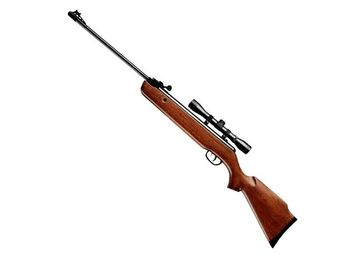 Crosman Quest 1000X – пружинно поршневая винтовкаТехнические характеристики:Скорость пули: 305 м/сВес: 2.73 кгМатериал приклада – деревоСтвол стальной, нарезнойВ комплект входит оптический прицел 4х32 None