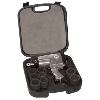 В комплект набора входит: пневмогайковерт, 8 головок 3/4", 1 масленка, 2 шестигранных ключа 4 и 5 мм, 1 штуцер, кейс.