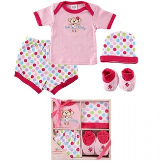 В набор, упакованный в подарочную коробку, входят: трикотажные трусики "фонарики", футболка с коротким рукавом, шапочка и пинетки. Забавная вышивка-аппликация и яркий принт делает этот удобный комплект нарядным. None Можно купить без предварительного заказа.