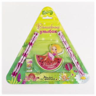 - Набор Милой феечке подарочный (4 карандаша + блокнот + ластик + линейка + точилка) по выгодной цене 300 р. руб.;