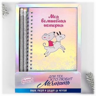 Подарочный набор "Моя история" - это замечательный практичный сувенир школьнику, другу или коллеге на Новый год. Весёлая мышка - прекрасный символ наступающего года.