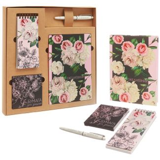 Набор Розы подарочный (ежедневник, блокнот, бумага для записей, авторучка)