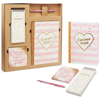 Набор Счастье подарочный (ежедневник, блокнот, бумага для записей, авторучка)