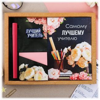 - Лучшему учителю набор подарочный (ежедневник, бумажные стикеры, авторучка, значок) в каталоге Подарочные наборы в России;
