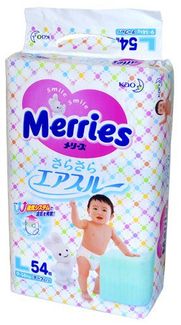 - Подгузники Merries (Мериес) L 54 (9-14 кг) в каталоге Подгузники и пеленки в России;