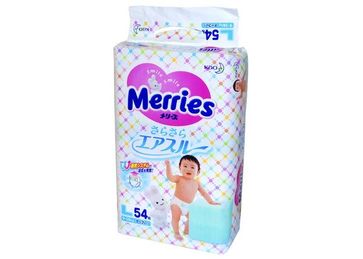 - Подгузники Merries (Мериес) L 54 (9-14 кг) по выгодной цене 873 р. руб.;