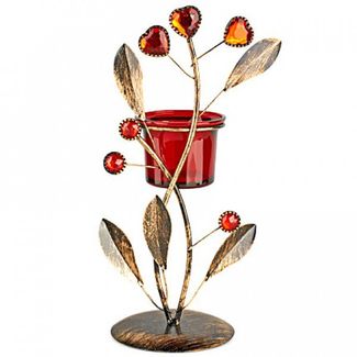 Металлический подсвечник "Венецианский цветок" красного цвета наполнит любое помещение теплом и уютом, добавит нотку романтики и изыска каждому интерьеру. Ведь столь грациозная композиция в виде цветка на изящно изогнутой ножке, декорированная оригинальными листочками и инкрустированная красными и янтарными камнями, станет как акцентом в декоре, так и роскошным подарком для ценителя элегантных и практичных аксессуаров.