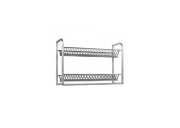 размещается над моечной ванной в моечном отделении, либо над производственным столом в кухонных цехах. Возможно размещение полок одна над другой. Полка состоит из каркаса, кассет для тарелок и поддона. Кассета представляет собой решётку с ячейками, в которые помещаются тарелки. Кассета и каркас изготовлена из пищевой нержавеющей стали. Поддон предназначен для сбора жидкости, поступающей с мокрой посуды. Поддон изготовлен из пищевой н/ж стали. На 1 кассете помещается 30 тарелок, либо 50 стаканов на кассете? предназначенной для стаканов. Крепить полку следует к влагоустойчивым поверхностям.