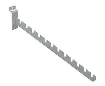 Кронштейн наклонный (F110). Навесной кронштейн для стеновой панели с пазами с 10-ю выемками. Широко используются в магазинах одежды, игрушек, инструментов. Преимущества: прочность, функциональность, универсальность, надежность.