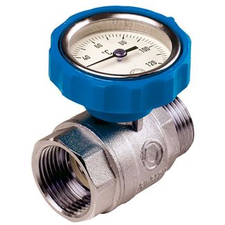Шаровой кран TECEfloor 1"x1" синий с наружно-внутренней резьбой. Укомплектован стрелочным термометром. Материал - латунь. None Страна производства: Германия