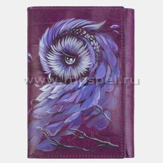 Женский кошелек из натуральной кожи «Сова» фиолетовый:застежка кнопкаотделение для купюркармашки для пластиковых карткармашек на молнии Кошелек фиолетовый «Сова» из коллекции Premium бренда Alexander TS - настоящее произведение искусства. Картинка на кошельке создана художником при помощи специальной техники выжигания по коже и росписи красками. Каждый рисунок наносится на кожу вручную, что обеспечивает его неповторимость. В нашем магазине можно купить как готовый аксессуар, так и заказать индивидуально с вашим рисунком. При одновременном заказе комплекта аксессуаров, например кошелек + сумка, предполагается дополнительная скидка. None Возможен самовывоз. Есть доставка.