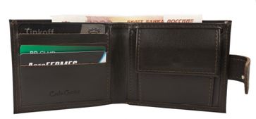 Кожаное портмоне Fietri (Фьетри) выполнено из натуральной кожи темно-коричневого цвета. Внутри отделение для купюр, 6 карманов для карт, карман для мелочи на кнопке. Закрывается на кнопку. None Возможен самовывоз. Есть доставка.