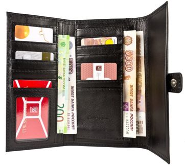 Кожаный кошелек Arsa (Арса) выполнен из натуральной кожи черного цвета. Внутри 4 отделения для купюр или документов, 15 отделений для карт (одно с окошком), карман на молнии сзади. None Возможен самовывоз. Есть доставка.