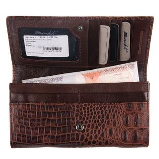Удобный женский кошелек Barkli 2010C-A308-B из натуральной кожи с великолепным тиснением. Цвет - коричневый. Кошелек на полную купюру. Отделение для мелочи - на обратной стороне на защелках. Внутри Кармашки для пластиковых карточек, два маленьких отделения для симкарты и карты памяти. Застежка кнопка. None Возможен самовывоз.