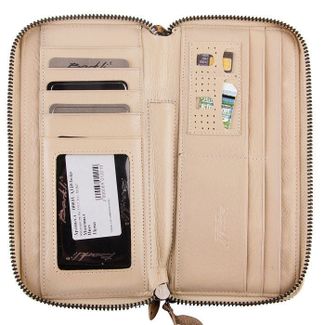 Женский кошелек на молнии Barkli 00031-A310 бежевый из кожи под питона: два отделения на молниях в одном два отделения для купюр и карман на молнии для мелочи в другом кармашки для пластиковых карт В комплекте кистевой ремешок. Так что при желании кошелек легко превращается в кошелек-клатч. None Возможен самовывоз.