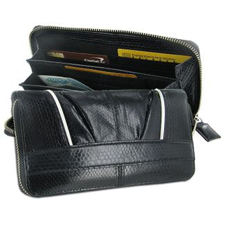 Кошелек женский из кожи морской змеи, цвет: черный с белой отделкой