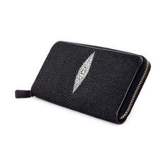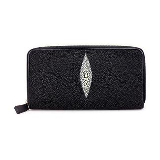 Кошелек женский из кожи ската, на молнии, цвет: черный