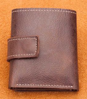 Кожаный купюрник Незаменимый предмет для хранения купюр и карт. Отличается компактностью, благодаря тройному сложению. Сбоку предусмотрен кармашек на молнии для мелочи. Выполнен из гладкой качественной кожи. None Возможен самовывоз.