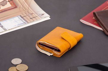 - Кожаный купюрник желтый по выгодной цене 1 500 р. руб.;