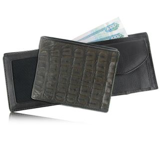 Солидный мужской кошелек из натуральной кожи каймана , Внутри: два вместительных отделения для купюр, множество кармашков для пластиковых карточек, прозрачное окошко, отделение для мелочи на кнопке, потайное отделение. None Возможен самовывоз.