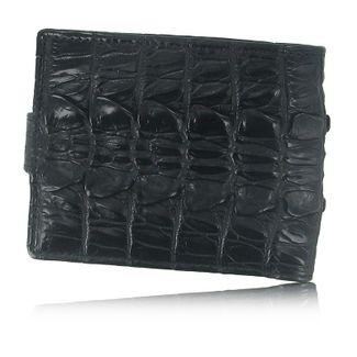 Закажите Мужской кошелек из кожи крокодила с хлястиком, цвет: черный у компании Московская Пеллетерия в России на портале Alloy: