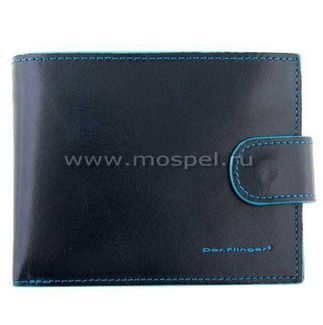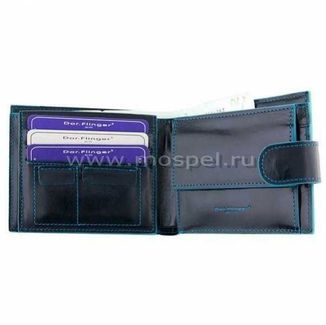Классическое мужское портмоне из натуральной кожи Dor. Flinger 019-624 синее застежка кнопка на хлястике отделение для купюр карман для монет камашки для карт 2 кармана-сеточки None Возможен самовывоз.
