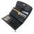 10 отделений для кредитных и дисконтных карт, 1 отделение с сетчатым окошком, 2 отделения для чеков и чековой книжки, 1 потайное отделение, 2 отделения для купюр, 1 отделение для монет на молнии, 1 наружный карман, Застежка - магнитная кнопка None Возможен самовывоз.