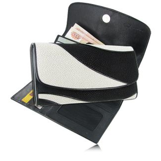 Женский кошелек из кожи ската, цвет: черно-белый