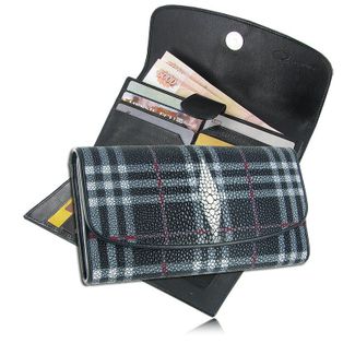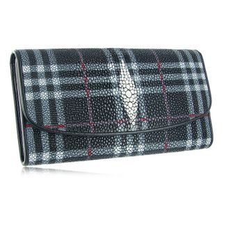 Женский кошелек из кожи ската, цвет: черный в клетку
