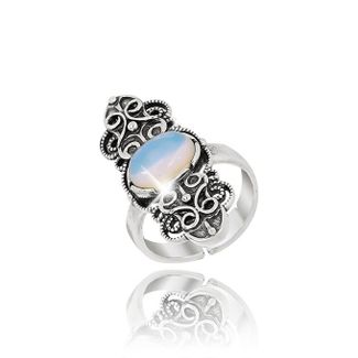 Камень: лунный камень. В изделии применяются синтетические камни, имитирующие натуральные. Тип кольца: безразмерное, подходит на любой палец. Размер украшения: 3,4 x 1,5 см. None Возможен самовывоз. Есть доставка.