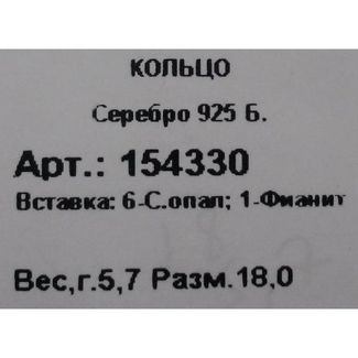 Камень: опал. В изделии применяются синтетические камни, имитирующие натуральные. Металл: серебро. Вес: 5,70 гр. Тип кольца: имеет фиксированный размер, перед покупкой выберите нужный размер в выпадающем списке. Размер украшения: 1,5 x 2,3 см. Вставки: фианиты. None Возможен самовывоз. Есть доставка.