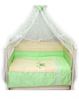 Комплект в кроватку Абэль 7 предметов 60x120 зеленый Bombus сделан из натурального сатина. Балдахин - вуаль с кружевной вышивкой. Наличные, Visa/MasterCard, Яндекс.Деньги, WebMoney Возможен самовывоз. Есть доставка.