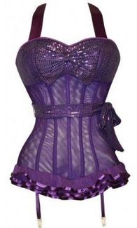 Великолепное бюстье из фиолетовой ткани. Верх украшен пайетками, талия - элегантным пояском. Сзади скрепляется на крючках. В наличии M 1 шт None Есть доставка.