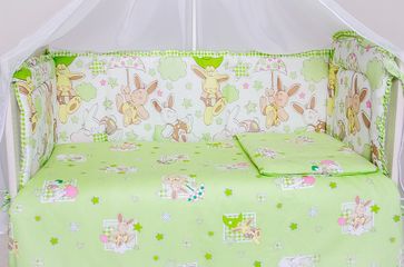 Комплект в кроватку «Весёлый зайка" российского производителя "Dream-a-dream" создан дарить сладкие цветные сны. С ним спальное место вашего крохи станет уютным, а сон малыша крепким и спокойным. Выполнен в нежных тонах, изготовлен из гипоаллергенных материалов. Наличные, Visa/MasterCard, Яндекс.Деньги, WebMoney Возможен самовывоз. Есть доставка.
