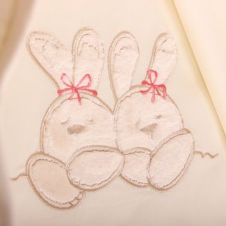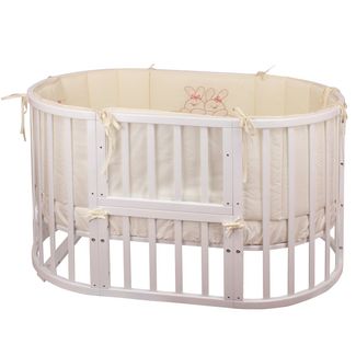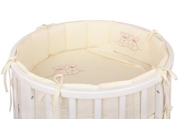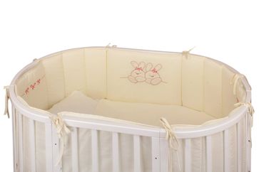 Нежный красивый комплект в кроватку Nuovita 6021 А/4 "Leprotti" российского производителя "Lappetti" состоит из защитных бортиков, практичной простыни на резинке, пододеяльника и наволочки из чистого хлопка, а также подушки и одеяла с наполнителем из бамбука. Пододеяльник и приходящаяся на изголовье часть бортика украшены милой вышивкой с изображением двух спящих зайчиков. С представленным комплектом кроватка малыша станет уютной и теплой, а сон сладким и крепким.
