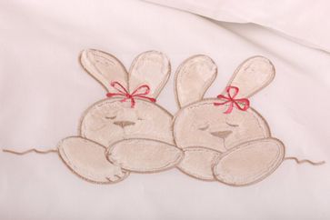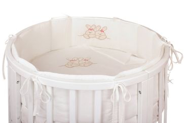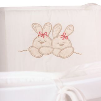 Нежный красивый комплект в кроватку Nuovita 6021/10 "Leprotti" российского производителя "Lappetti" состоит из защитных бортиков, практичной простыни на резинке, пододеяльника и наволочки из чистого хлопка, а также подушки и одеяла с наполнителем из бамбука. Пододеяльник и приходящаяся на изголовье часть бортика украшены милой вышивкой с изображением двух спящих зайчиков. С представленным комплектом кроватка малыша станет уютной и теплой, а сон сладким и крепким.