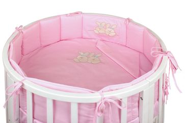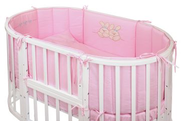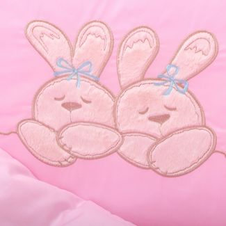 Нежный красивый комплект в кроватку Nuovita 6021/2 "Leprotti" российского производителя "Lappetti" состоит из защитных бортиков, практичной простыни на резинке, пододеяльника и наволочки из чистого хлопка, а также подушки и одеяла с наполнителем из бамбука. Пододеяльник и приходящаяся на изголовье часть бортика украшены милой вышивкой с изображением двух спящих зайчиков. С представленным комплектом кроватка малыша станет уютной и теплой, а сон сладким и крепким.