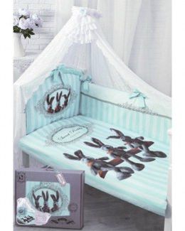 - Золотой гусь 7 предметов Sweet Rabbit голубой Винтаж в каталоге Пошив постельного белья в России;