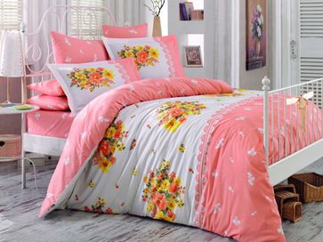 Закажите Комплект постельного белья 1,5 сп. (Евро) поплин "ALVIS", персиковый, 100% Хлопок у компании Meleğim-текстиль в России на портале Alloy:
