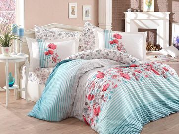 Закажите Комплект постельного белья 1,5 сп. (Евро) поплин "FIESTA", аква, 100% Хлопок у компании Meleğim-текстиль в России на портале Alloy: