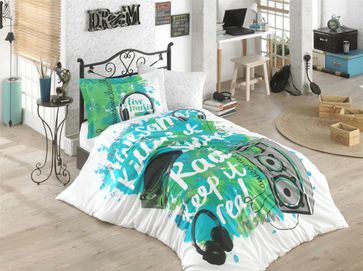 Комплект постельного белья 1,5 сп. (Евро) поплин "LIVE MUSIC", зелёный, 100% хлопок