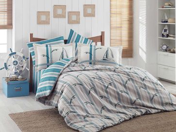 Закажите Комплект постельного белья, 1,5 спальное (Евро) поплин "MARINELLA", бирюзовый, 100% Хлопок у компании Meleğim-текстиль в России на портале Alloy: