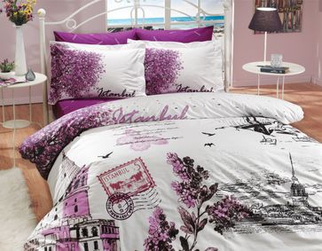 Закажите Комплект постельного белья 1,5 спальный (Евро) поплин "ISTANBUL PANAROMA", фиолетовый, 100% Хлопок у компании Meleğim-текстиль в России на портале Alloy: