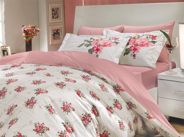 Закажите Комплект постельного белья 2 сп. (Евро) поплин "PARIS SPRING", розовый, 100% Хлопок у компании Meleğim-текстиль в России на портале Alloy: