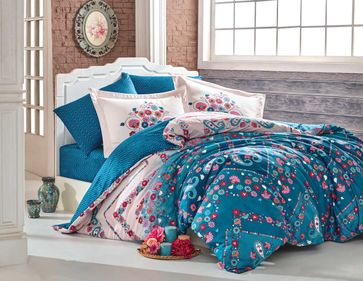 Закажите Комплект постельного белья 2 спальный (Евро) сатин "SANCHA", темно-бирюзовый, 100% Хлопок у компании Meleğim-текстиль в России на портале Alloy: